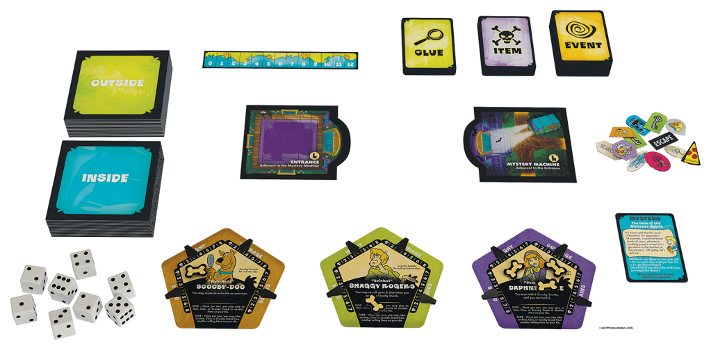 - 5 character cards (Scooby, Shaggy, Velma, Daphne, Fred)